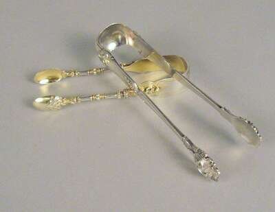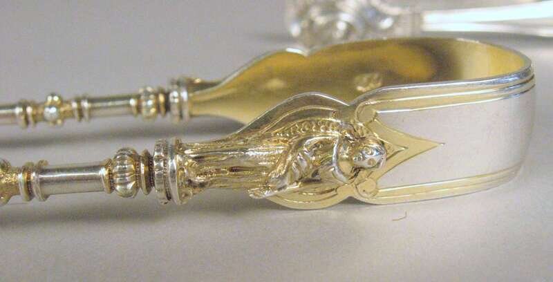 Pair of Victorian sterling silver and silver gilt sugar tongs frederick elkington, london, 1878