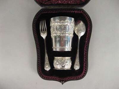 Victorian sterling silver child's presentation set henry atkin, sheffield, 1893