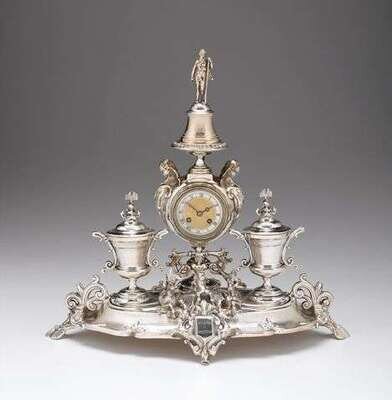 French silver inkstand & clock marks of fizaine, paris, 19th century