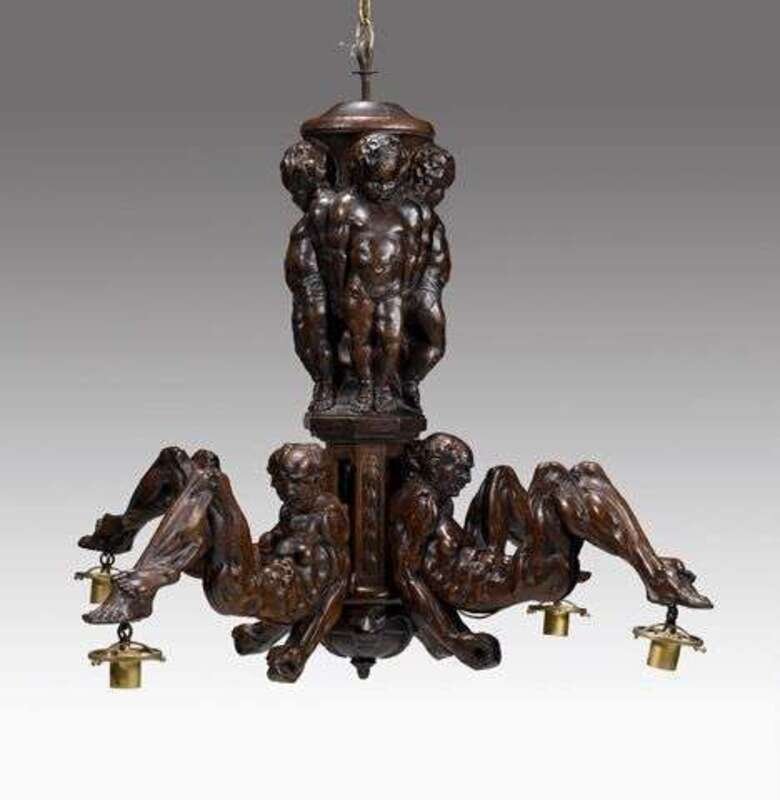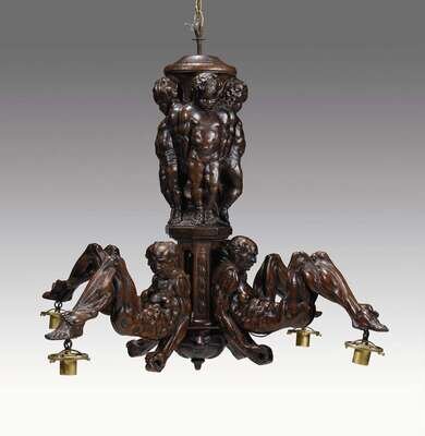 Continental carved walnut four-light chandelier late 19th/early 20th century