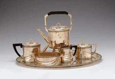 German silver six piece tea service sy & wagner, early 20th century