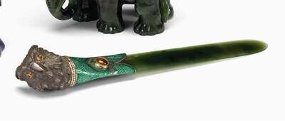 Fine Continental silver, spinach jade and enamel letter opener circa 1900