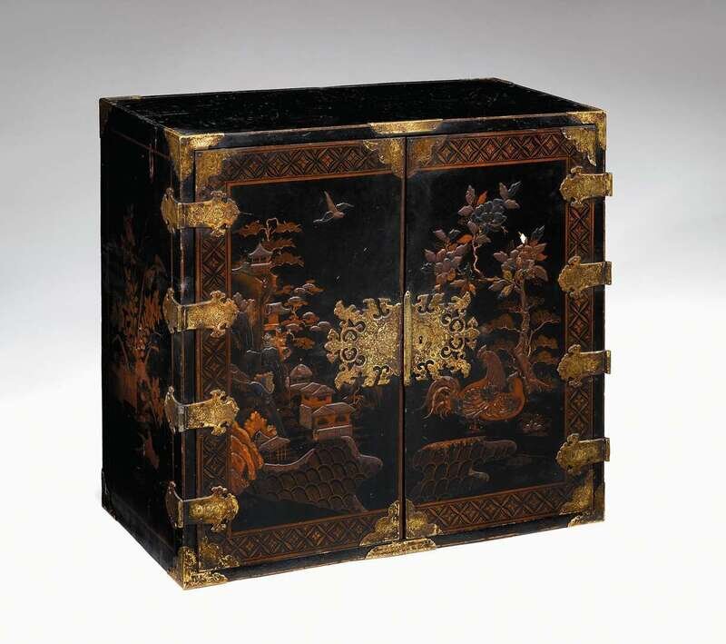 Black lacquer and gilt-metal mounted chinoiserie decorated cabinet late 19th/early 20th century