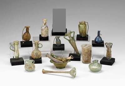 Collection of early Roman glass vessels 1st -3rd centuries a.d.