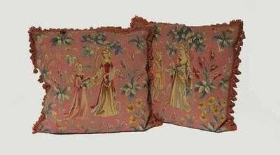 Pair of Aubusson tapestry cushions tapestry 19th century