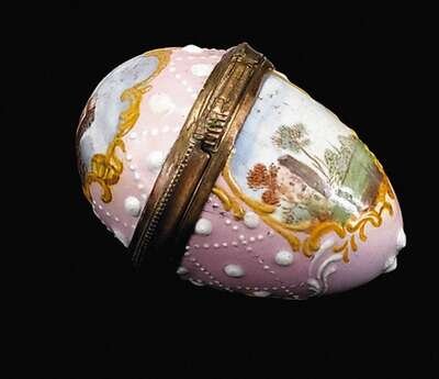 English enamel egg-form box 18th century, probably battersea