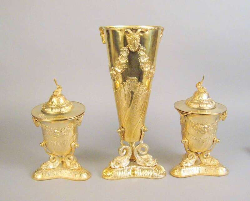 Continental gilt metal three piece garniture