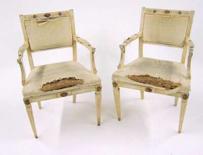 Each with a rectangular padded back and seat, raised on square tapered legs. (2).