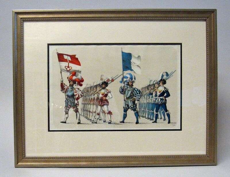 Five framed color lithographs of Swiss town parades h. jenny, bern, 1855