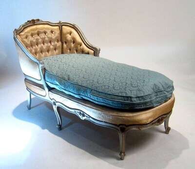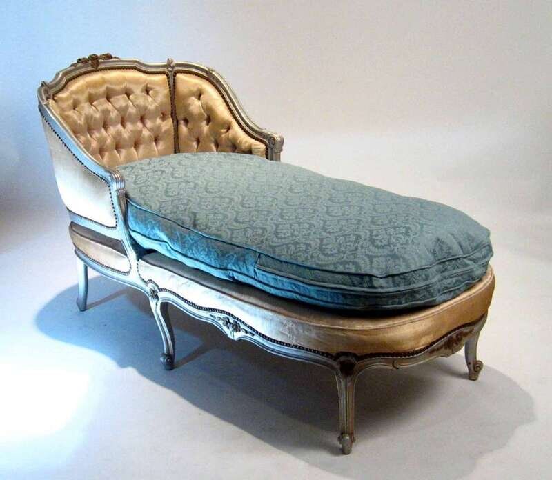 The curved, tufted backrest above loose cushion seat raised on cabriole legs.