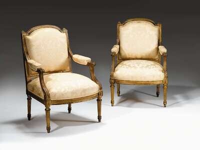 Pair of Louis XVI style giltwood fauteuils a la reine