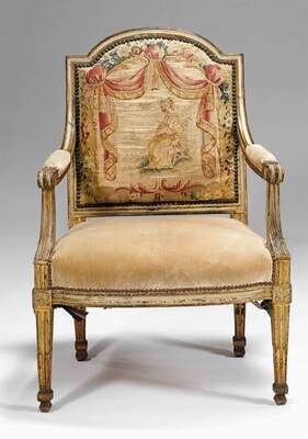 Louis XVI style painted and parcel-gilt fauteuil a la reine