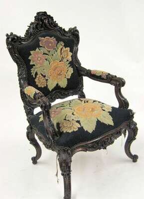 Elaborately carved throughout with shells and scrolls on shell carved cabriole legs ending in scrolled toes.