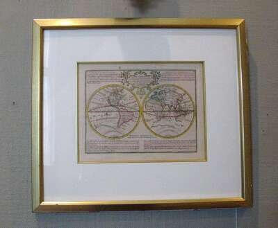 Titled 'Le Globe Terrestre Represente en Deux Plans-Hemispheres / dressee sur les Observations de M.rs de l'Academie Royale des Sciences', framed.