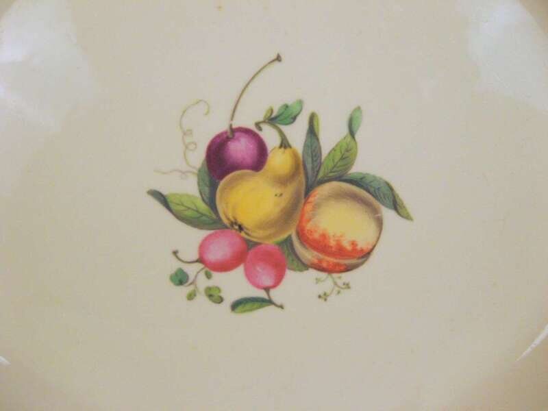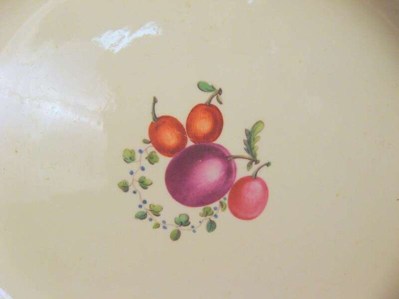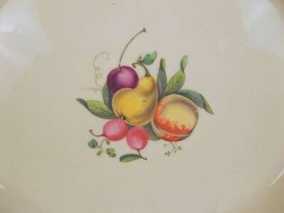 Each of oval form with a turquoise and gilt rim centered by a study of peaches, pears and berries. (2).