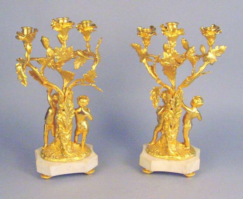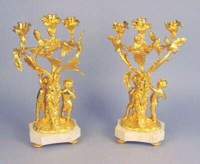 Pair of Louis XV style gilt bronze three light candelabra 19th century
