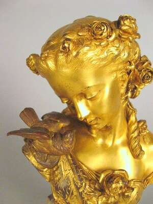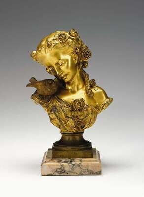 Auguste-Joseph Peiffer (French, 1832-1886) gilt bronze bust of a young girl