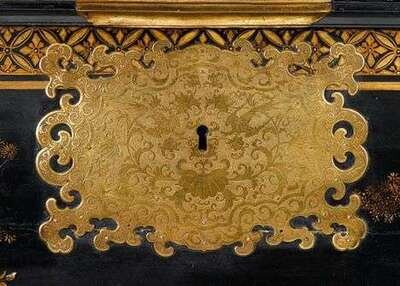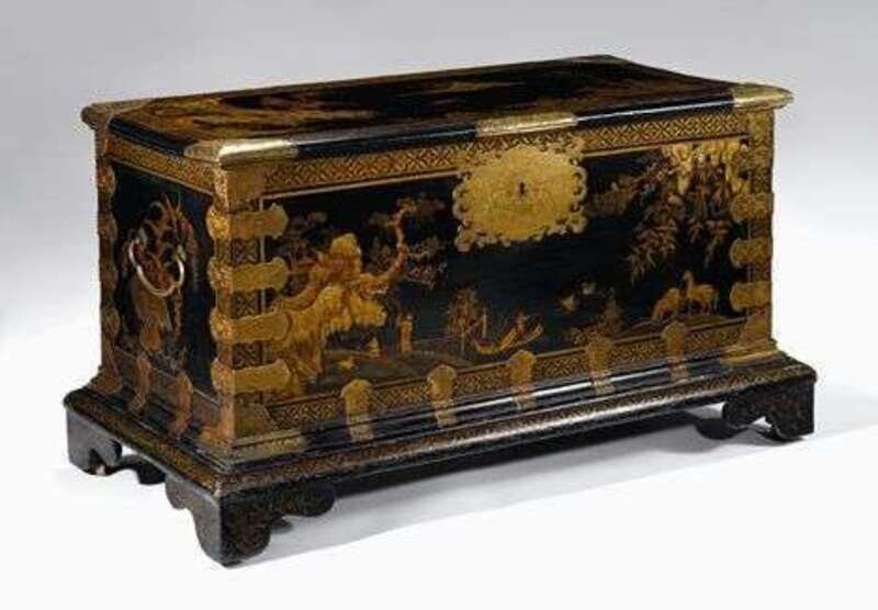 George I gilt brass mounted black and gilt japanned coffer early 18th century