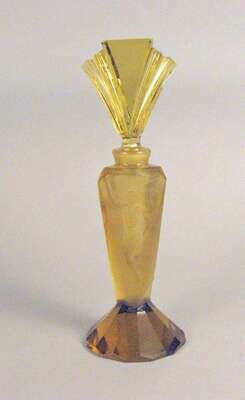 Of tapered triangular form with a flaring stopper and decorated with classical figures.