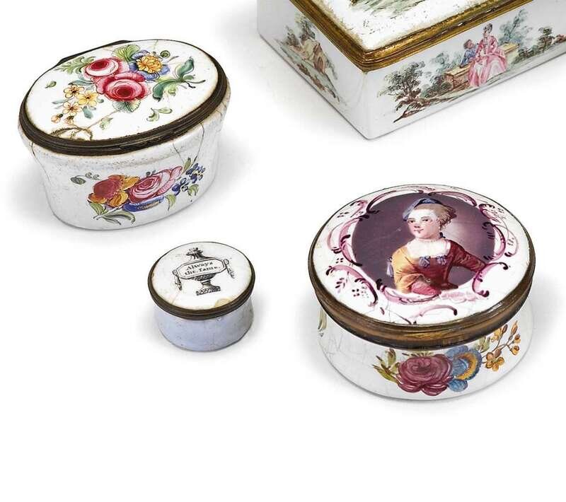 Group of three English enamel patch boxes bilston or battersea, late 18th/ early 19th century