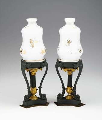 Pair of Louis Philippe gilt and patinated bronze lamps mid 19th century