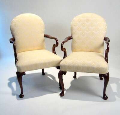 Pair of George II style upholstered mahogany armchairs