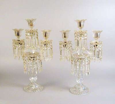 Pair of molded glass three-light candelabra possibly baccarat