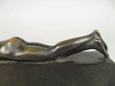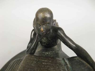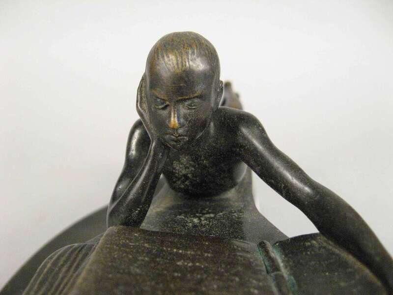 Dark brown patina, depicting a reclining boy reading, signed Dannhauser and inscribed Gerschutz to the underside. .
