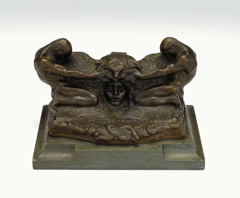 Italian bronze inkwellLA DISCORDIA dated 1901
