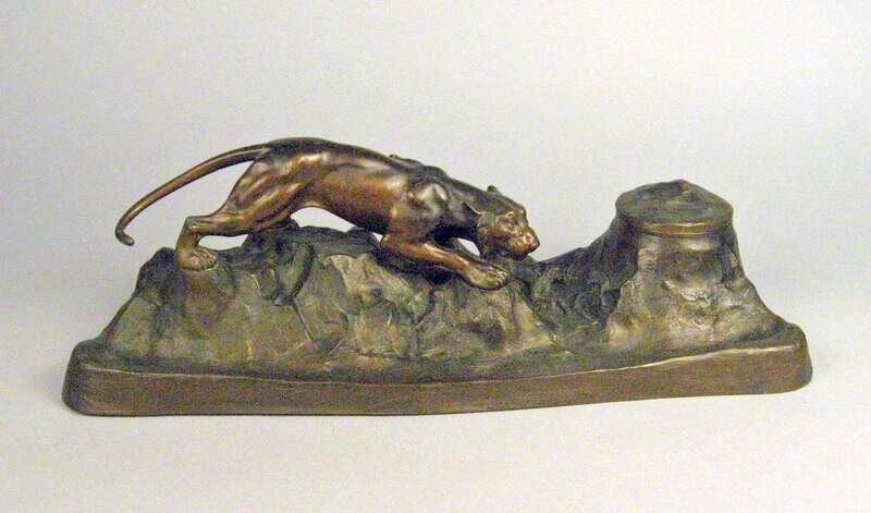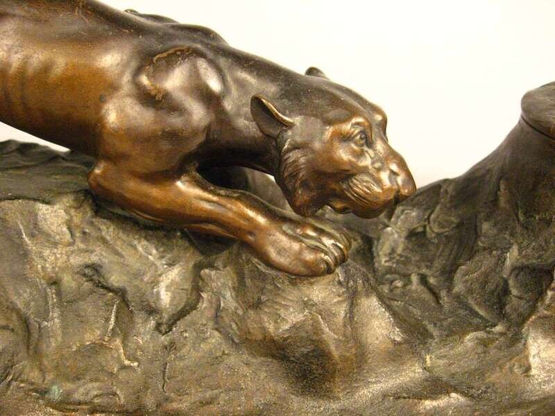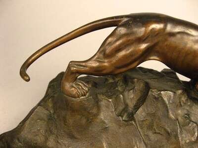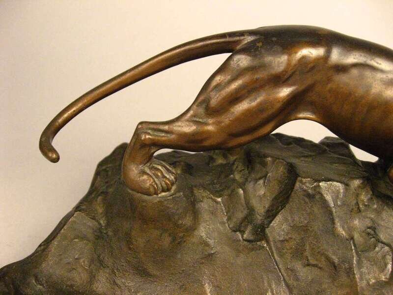 Dark brown patina, depicting a prowling panther upon rockwork, stamped Austria.