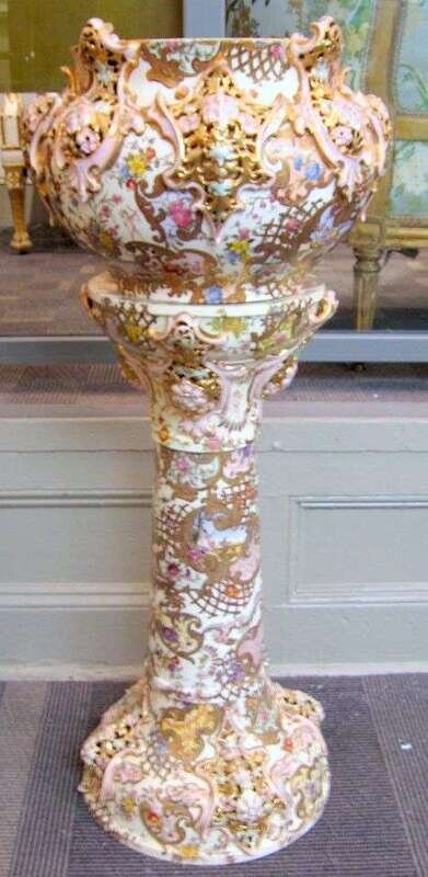Zsolnay Pecs porcelain jardiniere on stand early 20th century