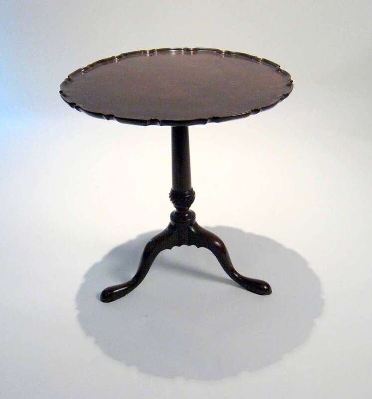 The circular piecrust top raised on a tripod base ending in pad feet.