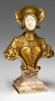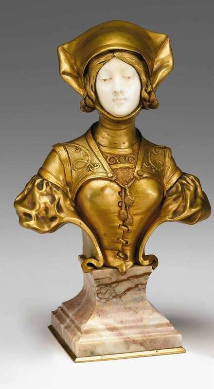 Art Nouveau gilt bronze and ivory bust francois alphonse piquemal (french, late 19th/early 20th century)