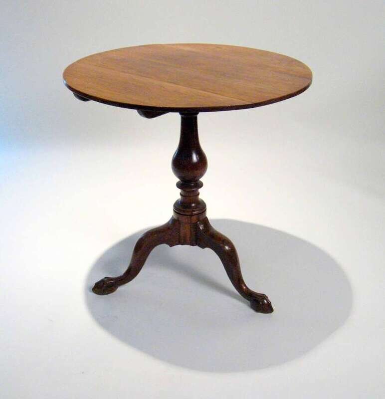 The circular top raised on a baluster standard and tripod base ending in ball and claw feet.