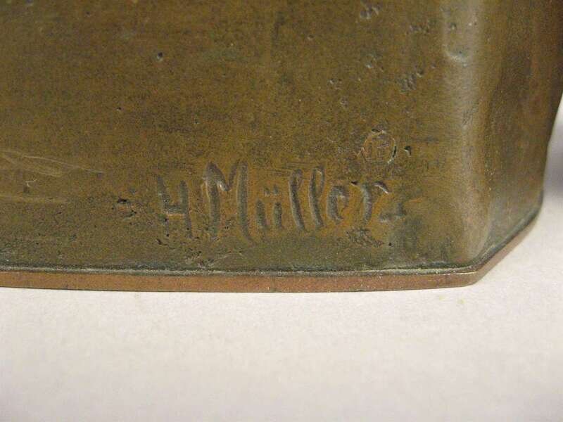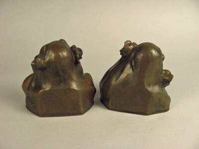 Bronze, light brown patina, modeled as a young beauty, each with poppy flowers in her hair, signed H. Muller. (2).