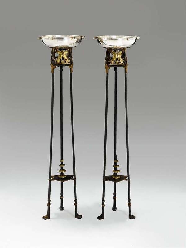 Pair of Art Deco gilt bronze and wrought metal torcheres