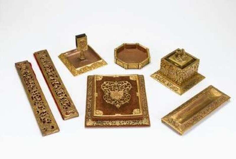 Assembled American gilt bronze desk set mainly e. f. caldwell & co., new york, late 19th century