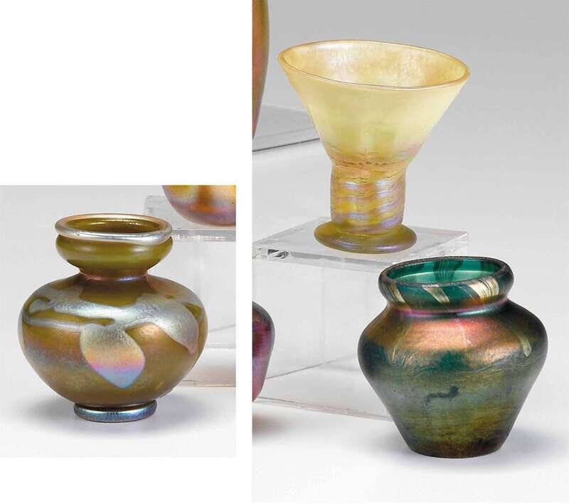 Group of three Tiffany Favrile glass small vases