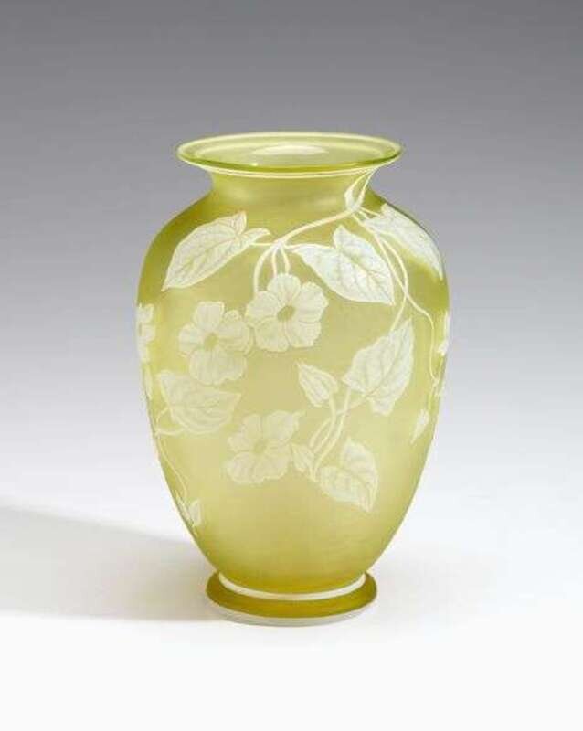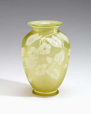Cut with flowers on a yellow ground, marked Thomas Webb & Sons, Cameo to the underside.