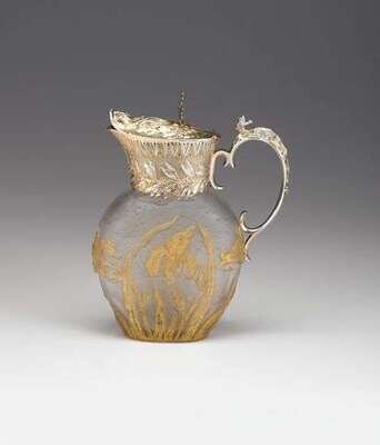 Daum Nancy French silver mounted acid etched and gilt decorated ewer late 19th century, retailed by tixier deschamps, paris