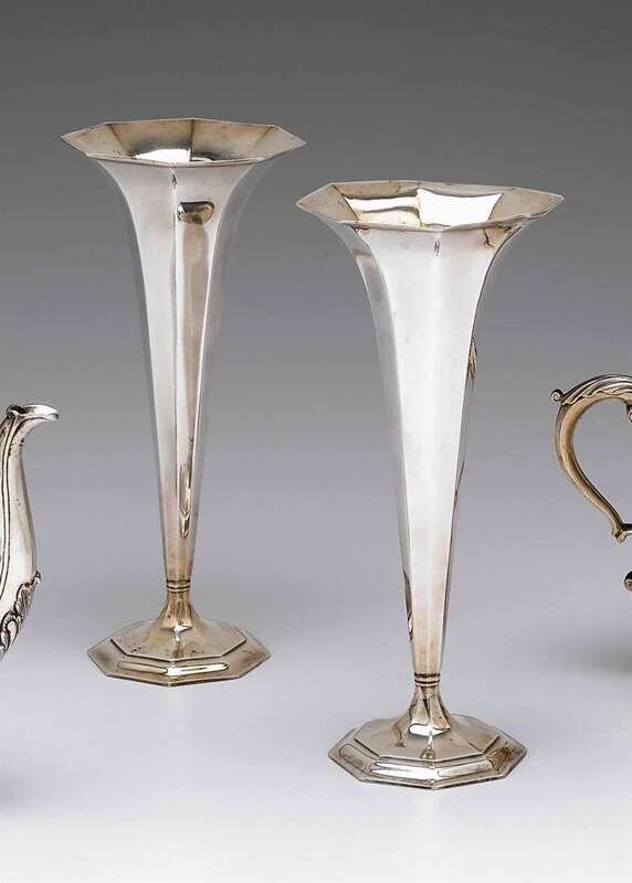 Pair of Tiffany & Co. sterling silver trumpet vases date mark 1913