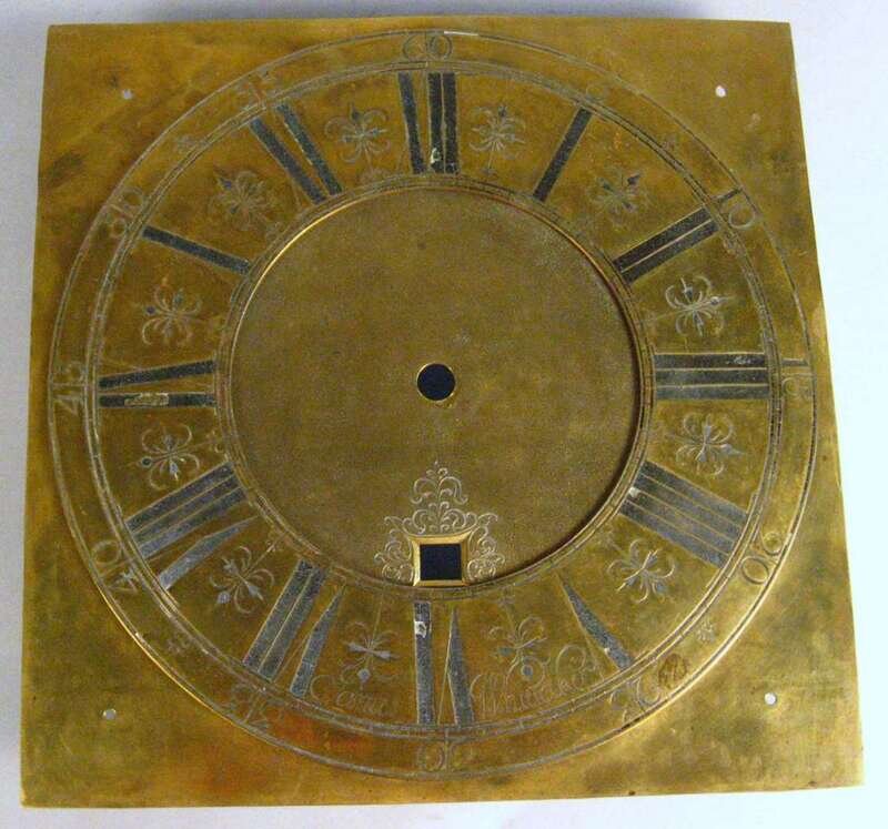English brass clock face and spandrels james whittaker, early 18th century