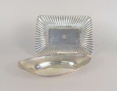Of rectangular form with lobed edges; together with a Whiting oval low dish with a pierced rim. (2).