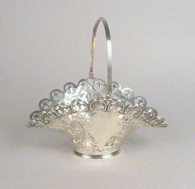The pierced basket with a lobed edge and reeded swing handle, monogrammed 'R'.