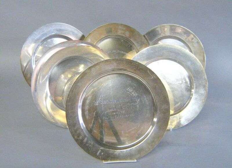 Group of six American sterling silver presentation salvers