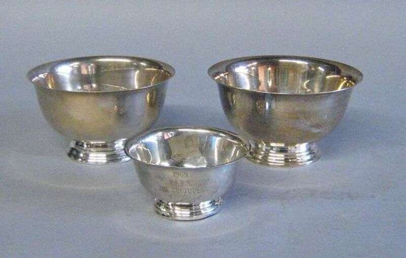 Three American 'Paul Revere' style sterling silver bowls