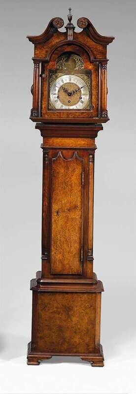 George III style burr walnut and mahogany grandmother clock