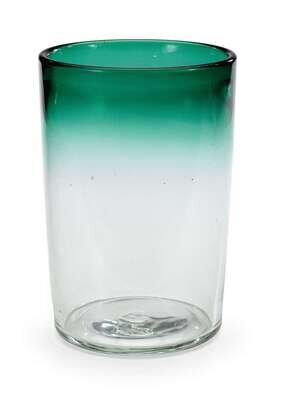 Green rim gradually fading into clear glass body.
