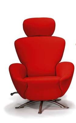 Designed in 2000 for Cassina. Nickel-plated steel frame construction, upholstered in red fabric. Swivel base, fully reclining with adjustable headrest and footrest.