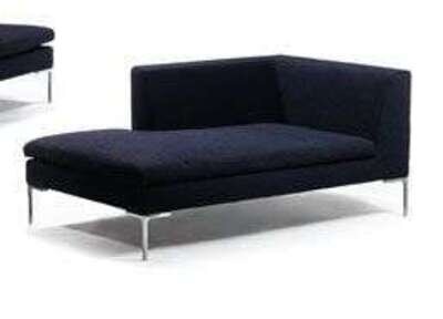 Designed in 2003 for B&B Italia. A redesign of a 1997 model, this piece is part of a modular system designed to work with other pieces or on its own. Tubular steel frame with navy-blue fabric-upholstered polyurethane foam.